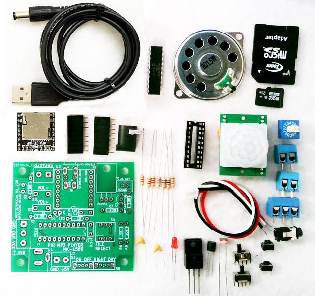 MK-158D 人を検出するとメッセージを再生!DC5V専用の人感センサーとスピーカー付きMP3ボイスプレーヤーキット(ハンダ付け必要)