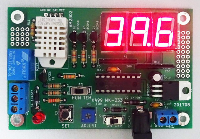 MK-333 設定した湿度/温度でリレーオン!表示とリレー付き湿度/温度センサーキット(ハンダ付け必要)