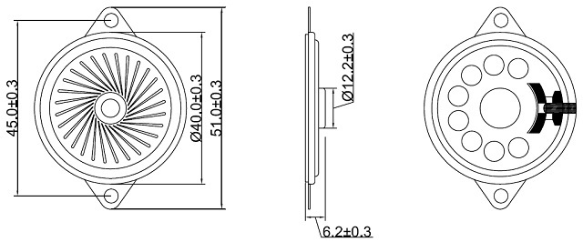 MSC-108B 接続用ケーブル付きですぐに使える!耳付き、超薄型で最大1.5W。40mm径8Ωスピーカー